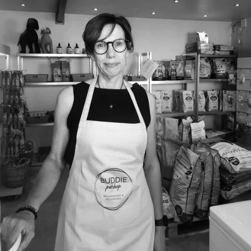 Ze stopte met de coaching van therapiedieren en opende een winkel om zich te focussen op het helpen van mensen met het voerplan van hun hond. Ze begeleidt jou dus nu met plezier met de voeding bij zowel een gezonde hond als bij voedingsproblemen.